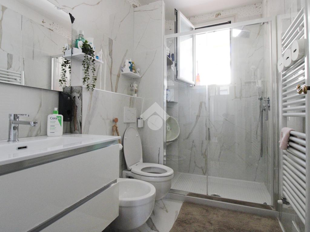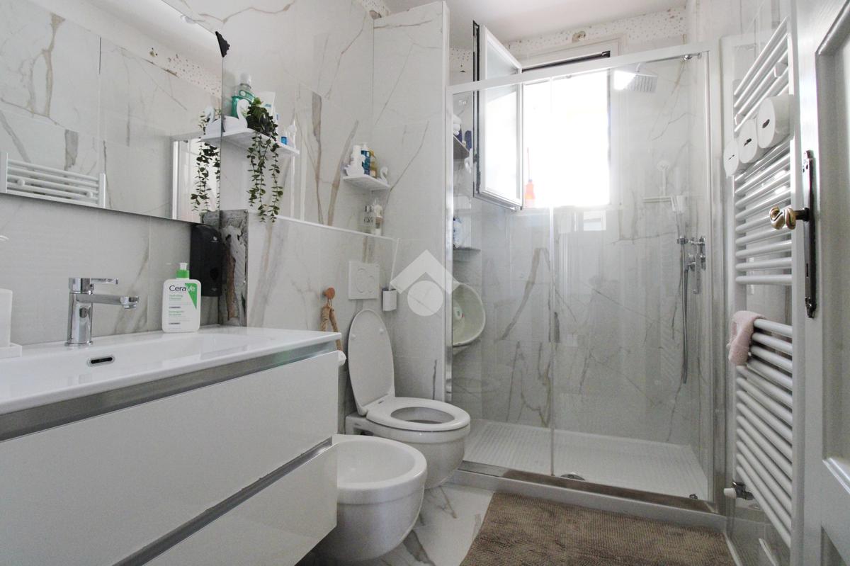 Il bagno è finestrato con box doccia.